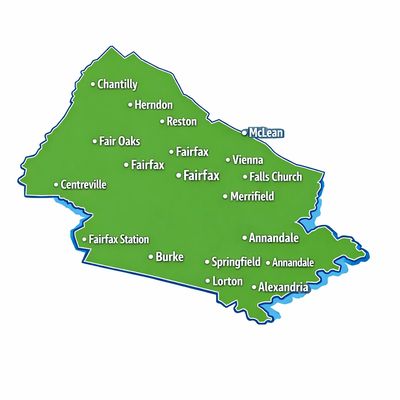Chantilly, Centreville, Fairfax, Fair Oaks, Oakton, Vienna, Oak Hill, Reston, Herndon, Tysons Corner, McLean, Merrifield, Fairfax Station, Burke, Springfield, Annandale, Alexandria, Lorton, Falls Church, Arlington